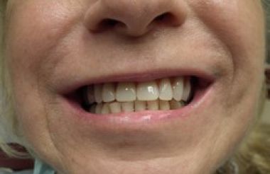 Four lower teeth were renewed with E-Max veneers and only minimal filing down was required. She was amazed at just how quickly and easily she could receive all this treatment and how big a difference it has made to her life.